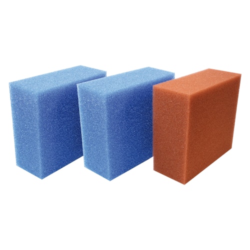 Original Oase Filterschwamm Komplett-Set BioSmart 7000 / 8000 für den vollständigen Austausch der Filterschwämme der Oase Durchlauffilter BioSmart 7000 und 8000. Das Komplett-Set enthält einen passenden roten Ersatzschwamm und 2 passende blaue Ersatzschwämme.