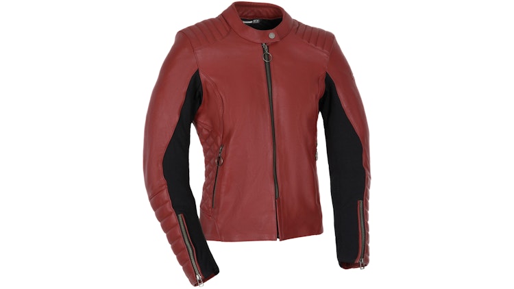 OXFORD Lederjacke "Radley" Damen, 100 % vollnarbiges Rindsleder in Rot/Schwarz. Stretch-Einsätze unter den Armen, windabweisende Leisten an Bündchen & Reißverschlüssen, Manschetten- und Saumerweiterung per Reißverschluss, gesteppte Details an Ärmeln, Schultern & Taille. CE-Level 2 Protektoren an Schultern & Ellenbogen, nachrüstbare Rückenprotektor-Tasche, 2 Seitentaschen mit Reißverschluss, 1 Innentasche. CE-AA zertifiziert.