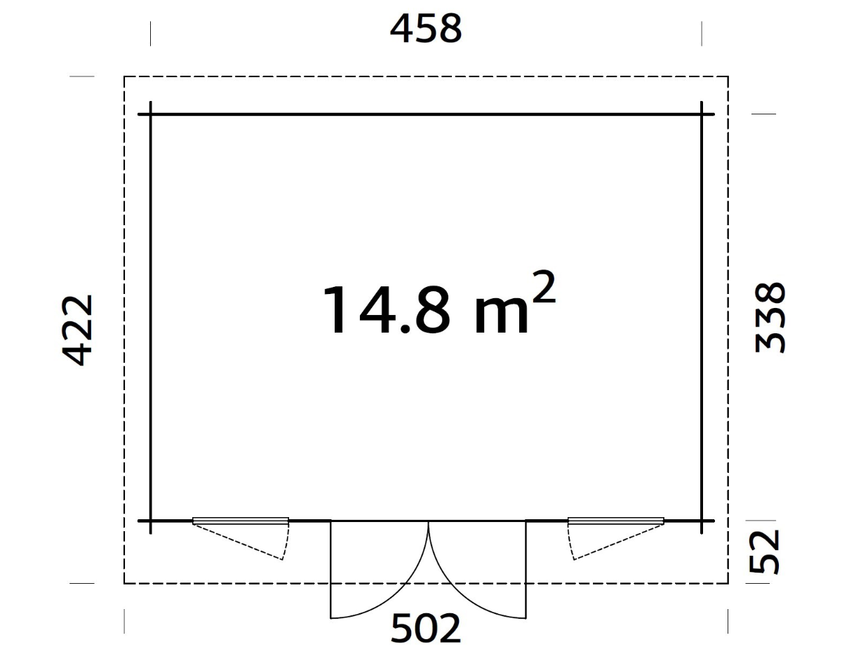 | Wandaußenmaße (BxT) | 458 x 338 cm |