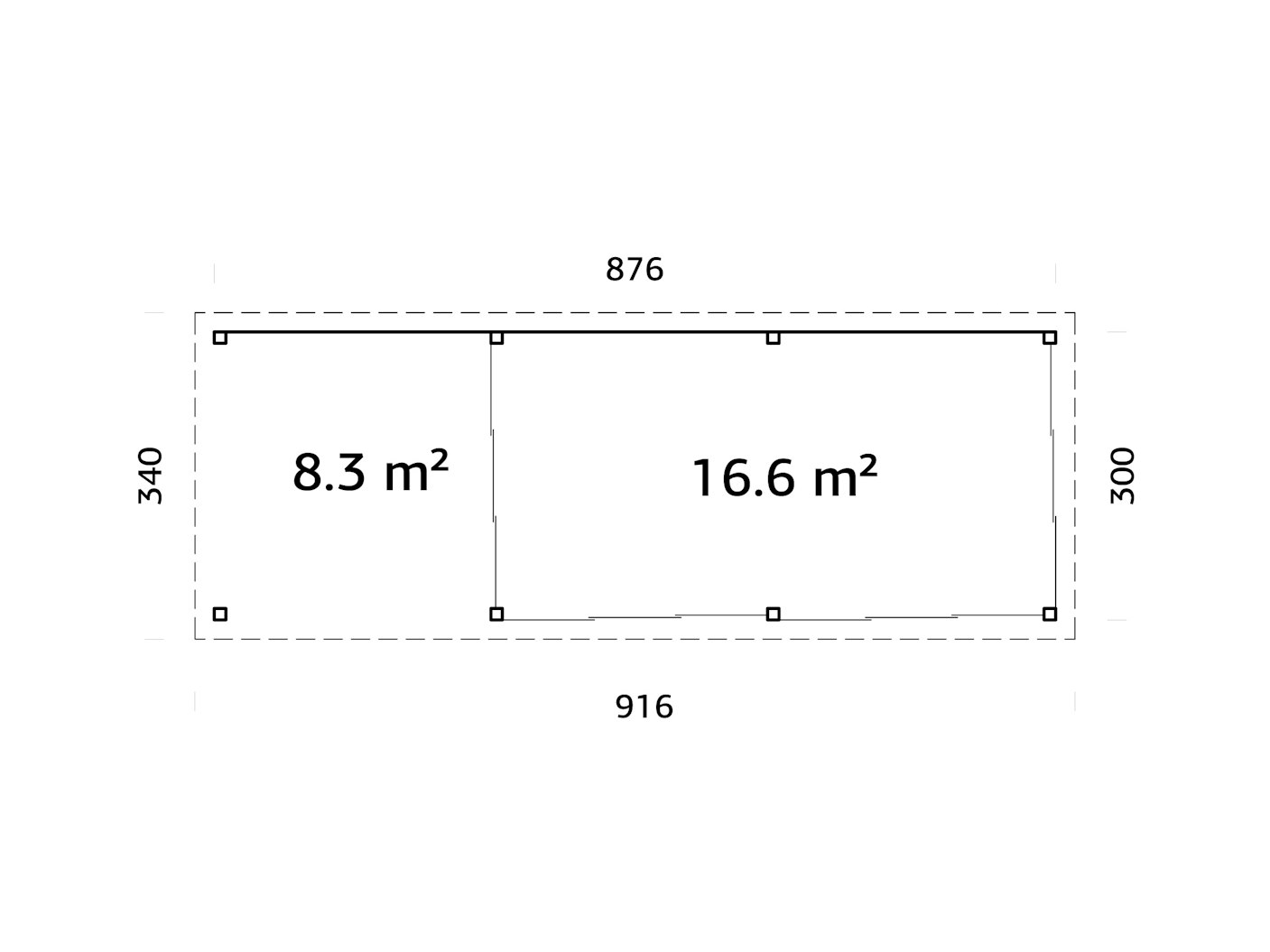 • Ohne Dacheindeckung (als Zubehör erhältlich)