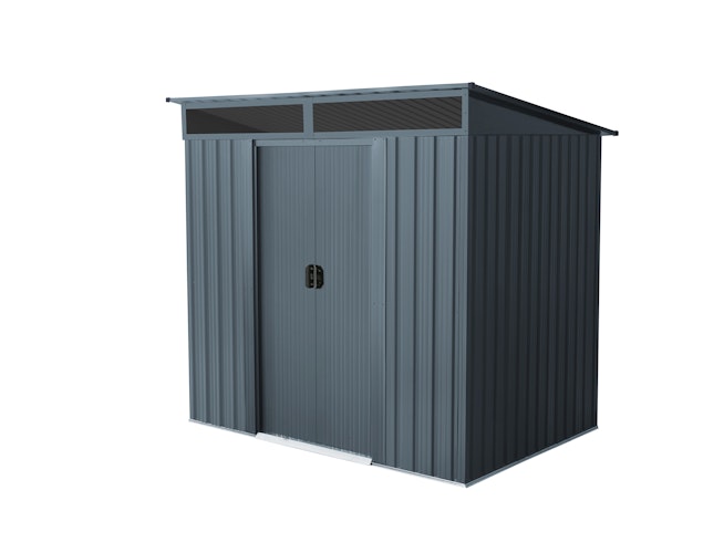 • Gerätehaus mit Pultdach, Lichtpaneelen und Schiebetüren