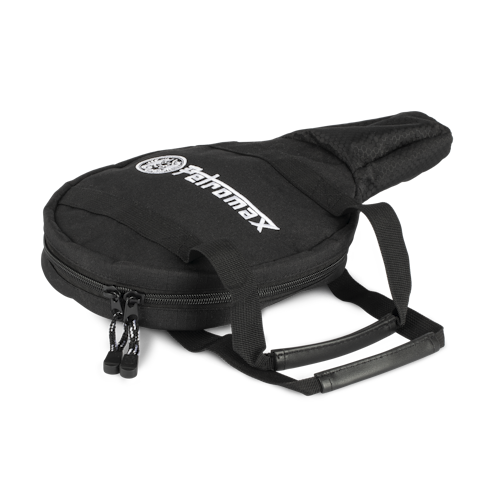 Der Deckel der Transporttasche für die Feuerpfanne ist mit dem traditionellen Drachenlogo- und dem Petromax-Schriftzug versehen.