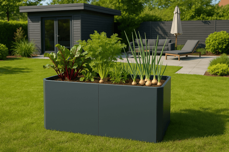 Verleihe deinem Garten mit unserem Premium-Hochbeet aus Stahl in Anthrazit (RAL 7016) eine moderne und stilvolle Note. Die ergonomische Höhe von 75 cm ermöglicht komfortables, rückenschonendes Gärtnern, während die 2 mm Wandstärke für extreme Stabilität und Langlebigkeit sorgt. Die pulverbeschichtete Oberfläche bietet dauerhaften Rostschutz und ist besonders pflegeleicht.