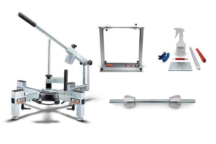 - BTR Wuchtbock: Ermöglicht ein präzises statisches Wuchten von Rädern bis zu 280 mm Reifenbreite.