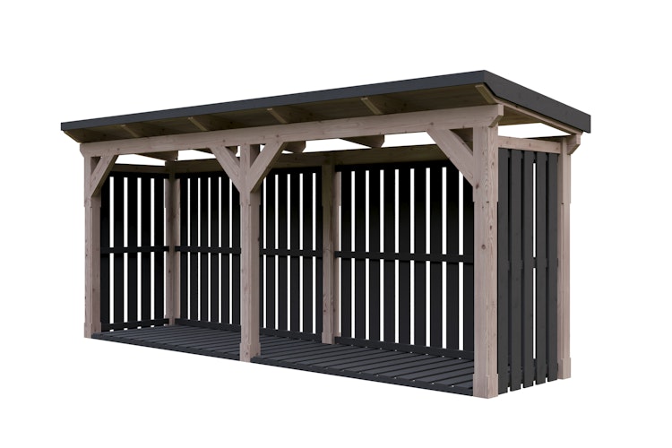 Der SKAN HOLZ Holzunterstand Holm 2 ist ein freistehender Unterstand aus hochwertigem Douglasienholz mit langlebiger, robuster Konstruktion und einem Lagervolumen von 9 m³ für Brennholz. Wände, Boden und Dachblende sind in anthrazit behandeltem Fichtenholz ausgeführt, wodurch der Unterstand witterungsgeschützt, pflegeleicht und sofort einsatzbereit ist.