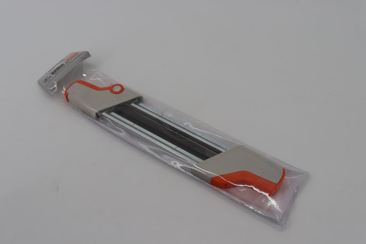 Die richtige Schärfe beim Kettensäge schärfen ist eine Grundvoraussetzung für ein effektives Arbeiten mit Kettensägen. Der STIHL Feilenhalter unterstützt Sie beim effizienten und sicheren Nachschärfen, indem er zwei Arbeitsschritte mit einer Kombi-Schärfhilfe vereint. Im Feilenhalter 2-in-1 mit Feilen-Toleranzausgleich (nur bei STIHL) sind Rundfeile sowie Flachfeile bereits integriert. So können Sie bequem und schnell die Zähne nachschärfen und gleichzeitig die Tiefenbegrenzer der Sägekette zurücksetzen, ohne das Arbeitswerkzeug zu wechseln.Der STIHL Feilenhalter 2-in-1 ist für 1/4" Picco-, 3/8" Picco-, .325"- und 3/8"-Sägeketten geeignet.