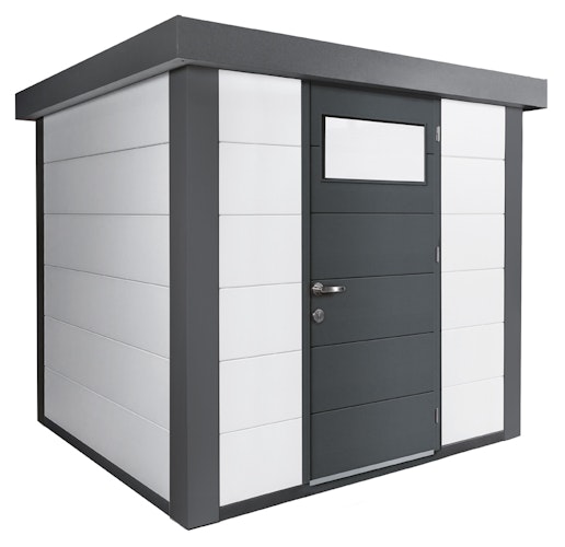 Das brandneue Telluria Metallgerätehaus Classico 2424 vereint edles Design mit perfekter Funktionalität! Das patentierte Metallbausystem sorgt für einen einfachen und schnellen Aufbau, eine hohe Belastbarkeit sowie eine UV- und witterungsbeständige Oberfläche mit 25 Jahren Garantie auf Korrosion. Das Dach wird inklusive Isolierung geliefert. Erhältlich in den Trendfarben granitgrau, lichtgrau und weiß.
