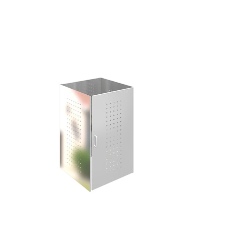 Die BINTO Grundverkleidung aus Edelstahl ist pflegeleicht, witterungsbeständig  und gibt Ihrer Mülltonnenbox ein modisches Erscheinungsbild. Man kann sie mit jeder beliebigen Erweiterungsverkleidung aus Holz oder HPL kombinieren. Die Befüllung der Mülltonne ist von der Wahl der Abdeckung abhängig. Mit dem Klappdeckel erfolgt die Befüllung von oben, nutzen Sie eine Pflanzschale, dann erfolgt die Befüllung über dieKlapptüre.