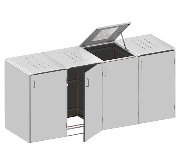 Das BINTO Mülltonnenbox System ist optimal geeignet, um Ihre Mülltonnen zu verstecken. Sie ist für Mülltonnen bis 240 Liter Inhalt geeignet. Das Mülltonnenbox System kann nachträglich noch erweitert werden, so dass beliebig viele Mülltonnen nebeneinander untergebracht werden können.