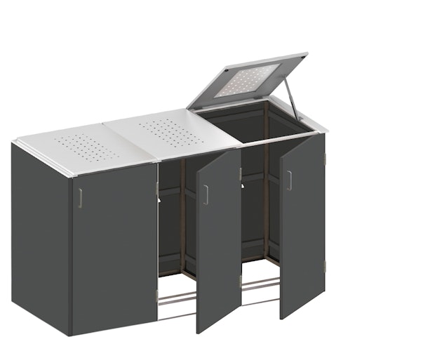 Das BINTO Mülltonnenbox System ist optimal geeignet, um Ihre Mülltonnen zu verstecken. Sie ist für Mülltonnen bis 240 Liter Inhalt geeignet. Das Mülltonnenbox System kann nachträglich noch erweitert werden, so dass beliebig viele Mülltonnen nebeneinander untergebracht werden können.