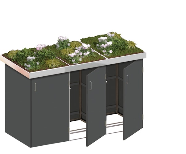 Das BINTO Mülltonnenbox System ist optimal geeignet, um Ihre Mülltonnen zu verstecken. Sie ist für Mülltonnen bis 240 Liter Inhalt geeignet. Das Mülltonnenbox System kann nachträglich noch erweitert werden, so dass beliebig viele Mülltonnen nebeneinander untergebracht werden können.