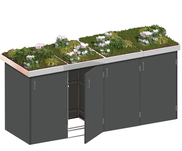Das BINTO Mülltonnenbox System ist optimal geeignet, um Ihre Mülltonnen zu verstecken. Sie ist für Mülltonnen bis 240 Liter Inhalt geeignet. Das Mülltonnenbox System kann nachträglich noch erweitert werden, so dass beliebig viele Mülltonnen nebeneinander untergebracht werden können.