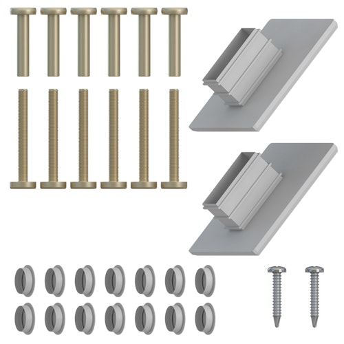 Inhalt: 6 x Schrauben und Hülsenmuttern, 14 x Kappen, 2 x Schrauben, 2 x Pfostenkappen