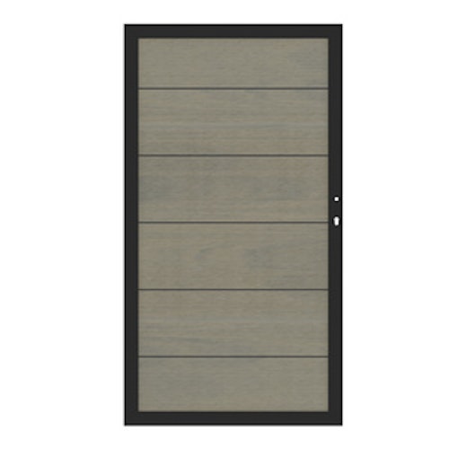 Das TraumGarten System WPC Platinum XL Universal-Einzeltor - bestehend aus 6 WPC-Profilen in umlaufendem Metall-Rahmen. Inklusive Beschlagsatz und Einsteckschloss.
