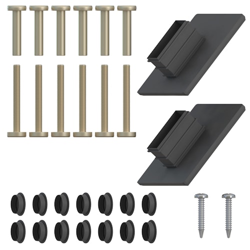 Inhalt: 6 x Schrauben und Hülsenmuttern, 14 x Kappen, 2 x Schrauben (selbstschneidend), 2 x Pfostenkappen