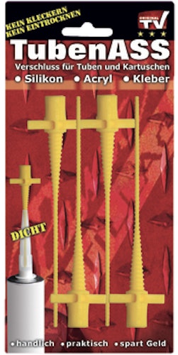 Tuben Ass verschliesst Tuben und Kartuschen schnell und zuverlässig. So ist der Inhalt einsatzbereit, wenn er benötigt wird und es muss viel weniger entsorgt werden. Wiederverwendbar.
