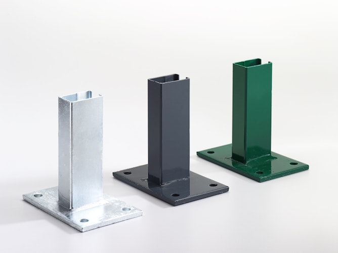 Die T&J Fußplatte mit Rohrstutzen ist passend zu den T&J Rechteckpfosten TOM und JERRY. Zum Aufschrauben der Pfosten.