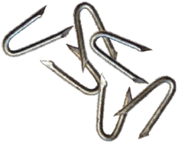 Mit den Krampen von T&J kann der Staketenzaun an den Zwischenpfählen angenagelt werden. 45er Set.