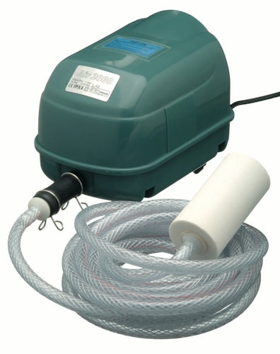 Mit der Ubbink Belüftungspumpe Air 2000 Indoor erhalten Sie den für Flora und Fauna benötigten Sauerstoff im Wasser. Über einen im Lieferumfang enthaltenen, 5 Meter langen Luftschlauch mit Belüfterstein fördert die Pumpe 2000 Liter Sauerstoff in der Stunde. Die Bezeichnung "Indoor" bedeutet lediglich, dass die Belüfterpumpe geschützt, z.B. in einem Gartenhaus, aufgestellt werden sollten. Der 10 Meter lange Schlauch sorgt dabei für die nötige Bewegungsfreiheit.