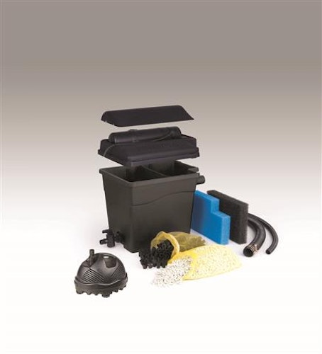 Das wirksame Filtersystem ist schnell für den Einsatz am Teich vorbereitet und installiert. Die enthaltenen Geräte des praktischen Komplettsets sind dabei optimal aufeinander abgestimmt.