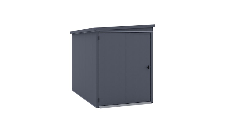 Die Weka Metall-Bikebox Gary in modernem Anthrazit bietet Platz für zwei Fahrräder und überzeugt durch eine große Tür sowie bodenseitige Schienen für sicheren Stand. Das robuste, wetterfeste Metallgehäuse schützt zuverlässig und fügt sich mit seinem klaren Design harmonisch in Garten oder Hof ein.