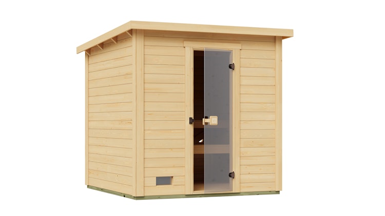- Bitte denken Sie daran, den Fußboden mitzubestellen, falls dieser nicht im Standard-Lieferumfang enthalten ist. Bei Gartensaunen bleibt der Boden im Sauna-Raum unbehandelt.