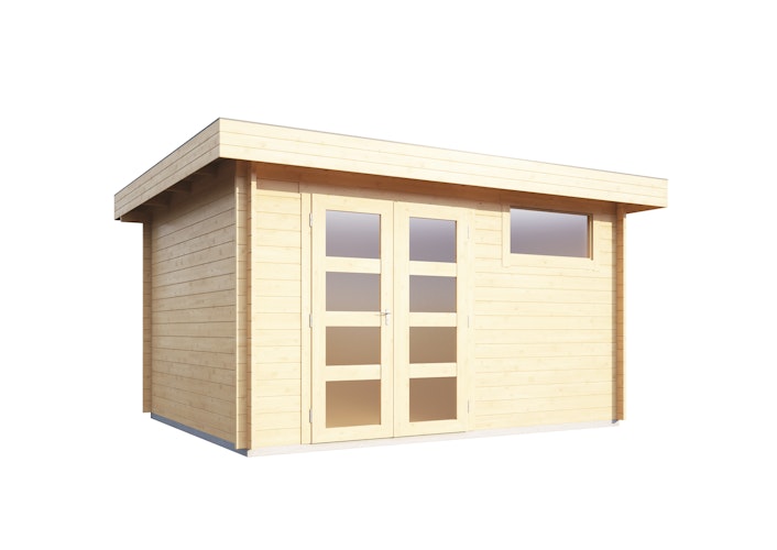 Das Wolff Finnhaus Gartenhaus Flachdachhaus Lille - Aktionsmodell gibt es nur in der Farbe naturbelassen zu bestellen.