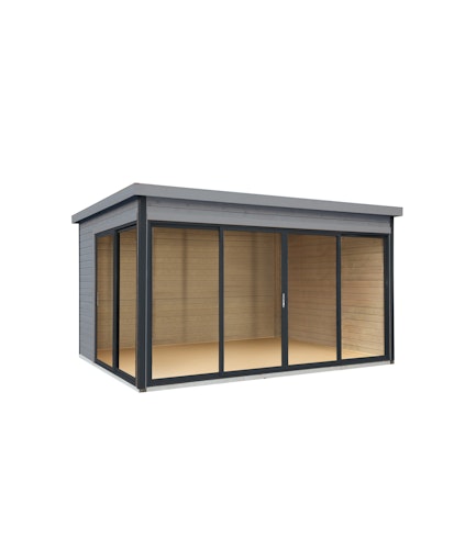 Wolff Finnhaus Gartenhaus Studio 44-D mit Alu-Eckverkleidung/Schiebtür
