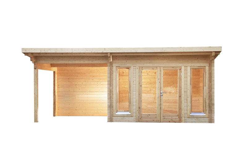 Wolff Finnhaus Gartenhaus Trondheim 70-A isolierverglast XL mit Anbau 300 cm