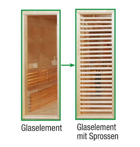 Wolff Finnhaus Sauna Paradiso: Tausch Glaselement zu Glaselement mit Sprossen