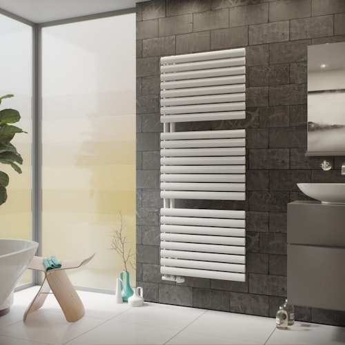 Elegante, ovale Horizontalpaneele in klassischem, neutralem Weiß machen den Ximax Badheizkörper Fortuna-Open weiß zu einem echten Blickfang für Ihr Bad. Außerordentlich praktisch: durch seine einseitig offene Bauweise und symmetrische Aufteilung der Paneele lässt sich der Designheizkörper um bis zu 180° drehen und damit ganz individuell ausrichten.